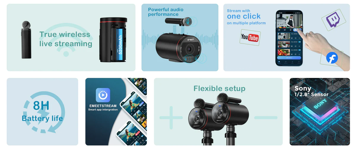 EMEET STREAMCAM ONE simplifies and democratizes video streaming, making it accessible and cost-effective for everyone instead of being complicated and expensive. Stream live from anywhere in the world, using Wi-Fi, Ethernet, without the hassle of cables, and reach an eager audience.